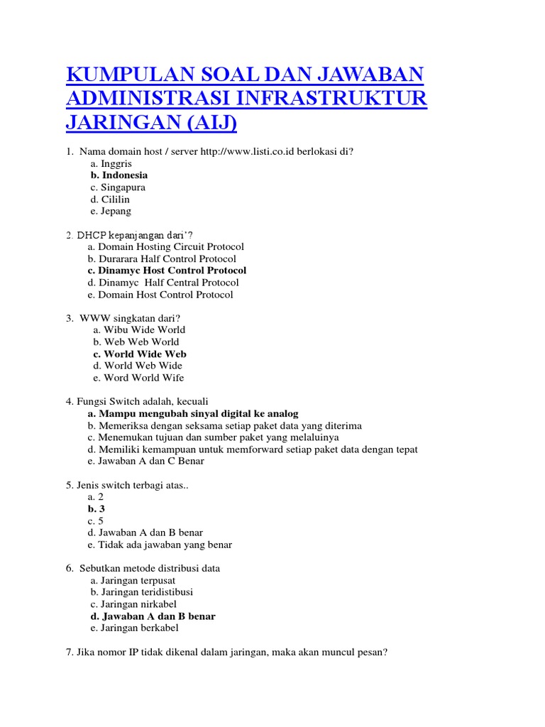 Soal Uts Administrasi Infrastruktur Jaringan Kelas 11 - Soal Administrasi Infrastruktur Jaringan Kelas 11 Semester 1 Doc Masnurul / Soal uts administrasi infrastruktur jaringan kelas 11.