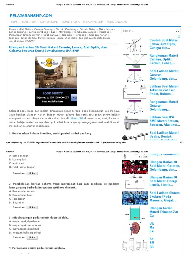 Ketika sinar cahaya menumbuk bidang cermin, sinar cahaya akan memantul dari cermin. Pembahasan soal essai wacana cermin, lensa, dan alat optik · jelaskan sifat bayangan yang dibuat oleh cermin datar! Di bawah ini adalah beberapa latihan soal tentang materi optik (kelas 8 semester genap), yaitu pada lensa dan cermin beserta jawaban dan pembahasannya. Cermin, penggunaan cermin cekung dan cermin cembung, pembiasan cahaya, pembentuka Sebuah benda dapat terlihat oleh mata kita .